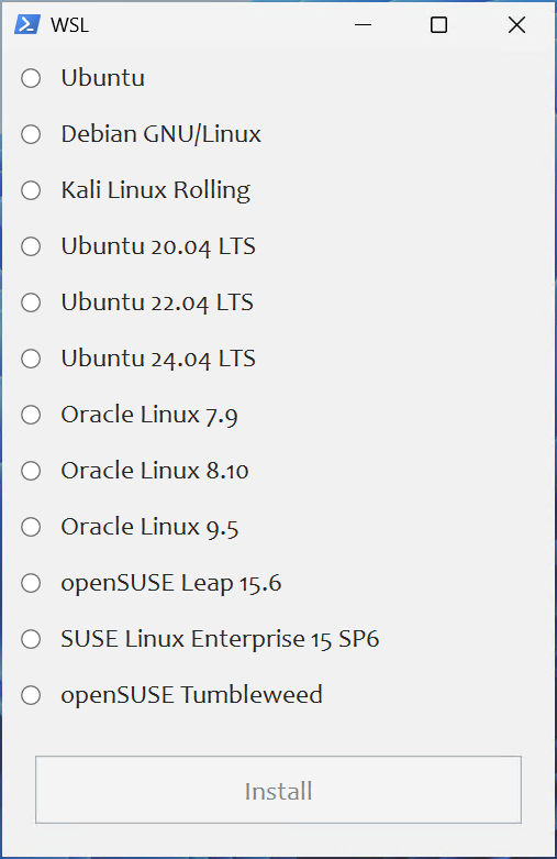 • Install WSL Linux distribution with pop-up using friendly distro names