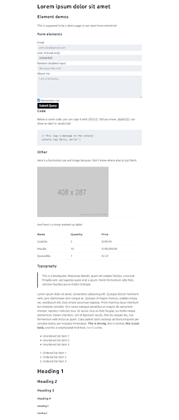 A list of classless CSS themes/frameworks with screenshots